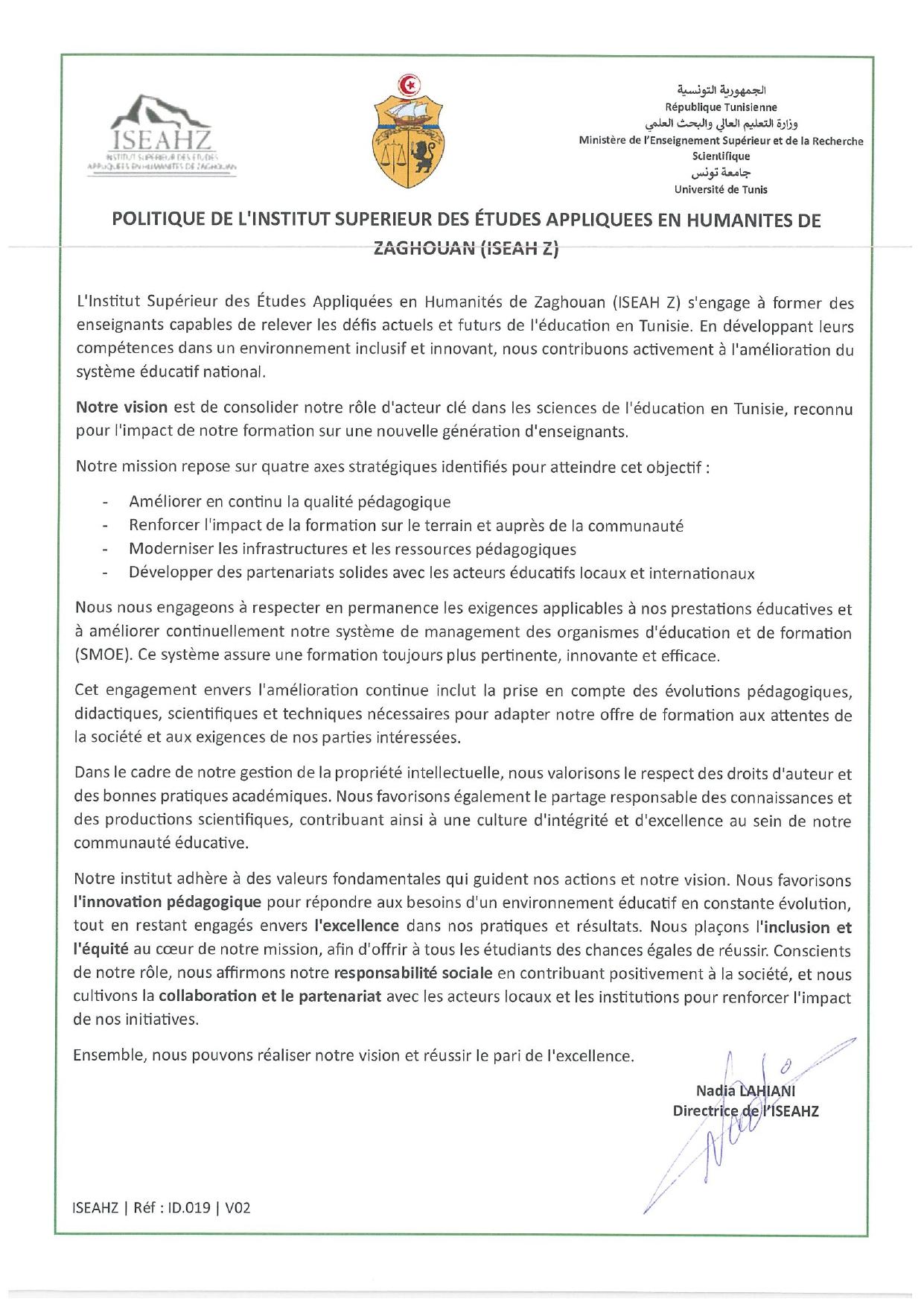 L’Institut Supérieur des Études Appliquées en Humanités de Zaghouan a vu le jour durant l’année universitaire 2006-2007. À ses débuts, il proposait deux licences : l’une en français appliqué à l’administration, l’autre en anglais appliqué aux affaires. Au fil des années, l’Institut a évolué pour mieux répondre aux besoins du pays et des jeunes. En 2016-2017, une licence en éducation-enseignement a été ouverte, marquant un tournant dans l’orientation de nos formations. Plus récemment, en 2022-2023, un master en français et éducation est venu compléter notre offre, en phase avec les attentes du secteur.